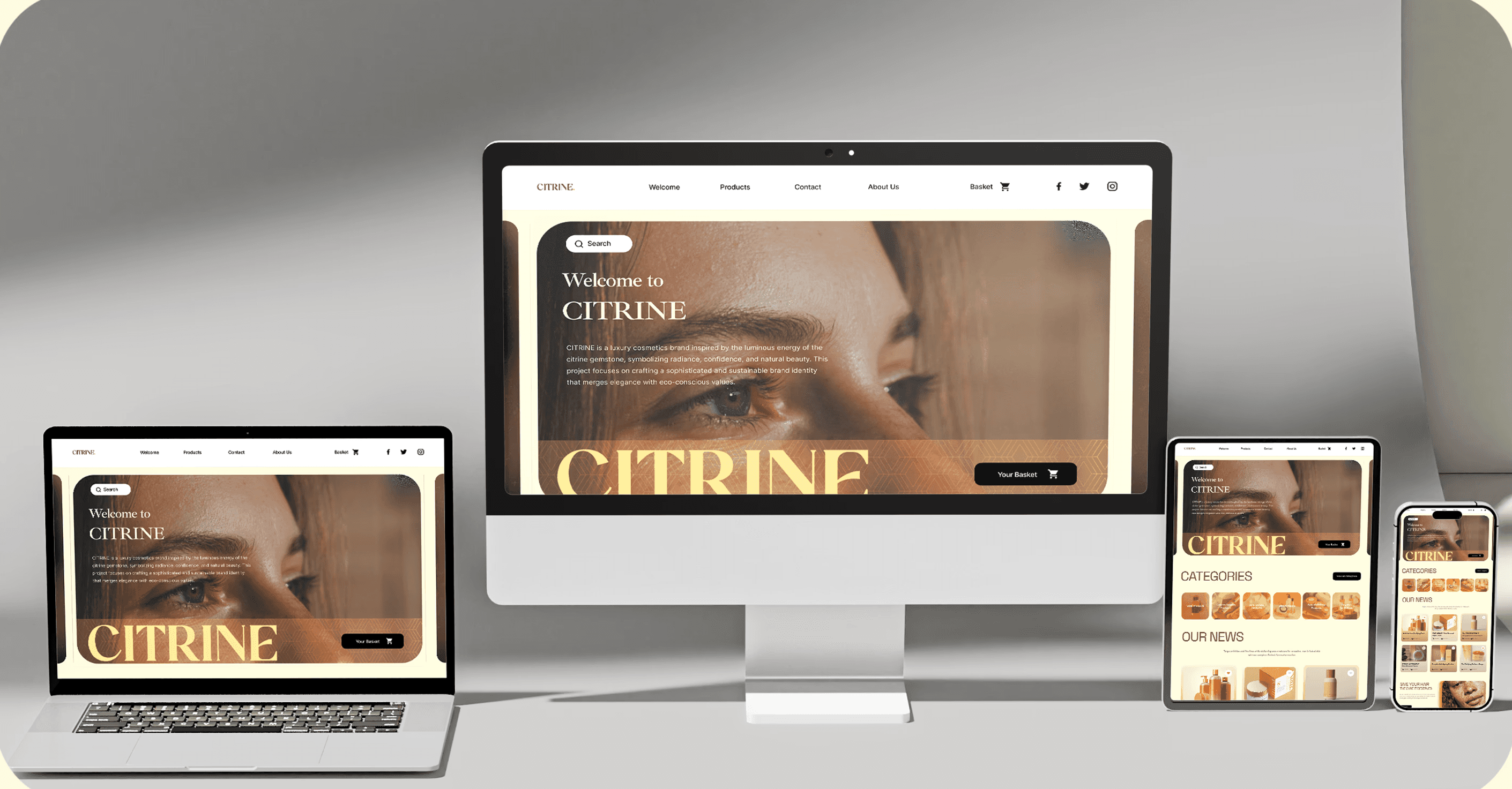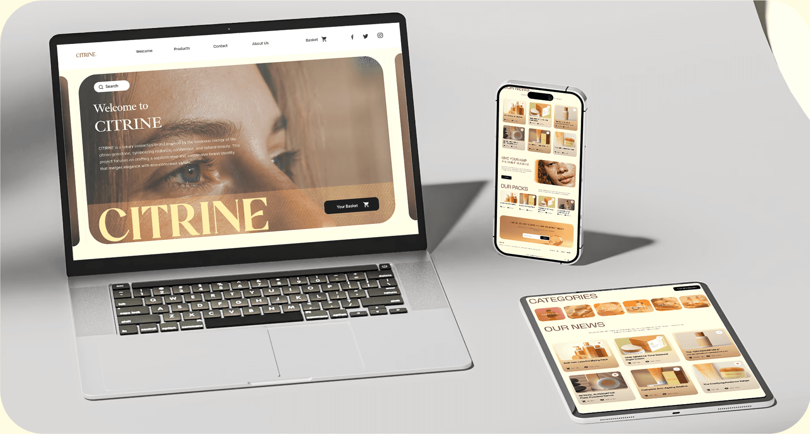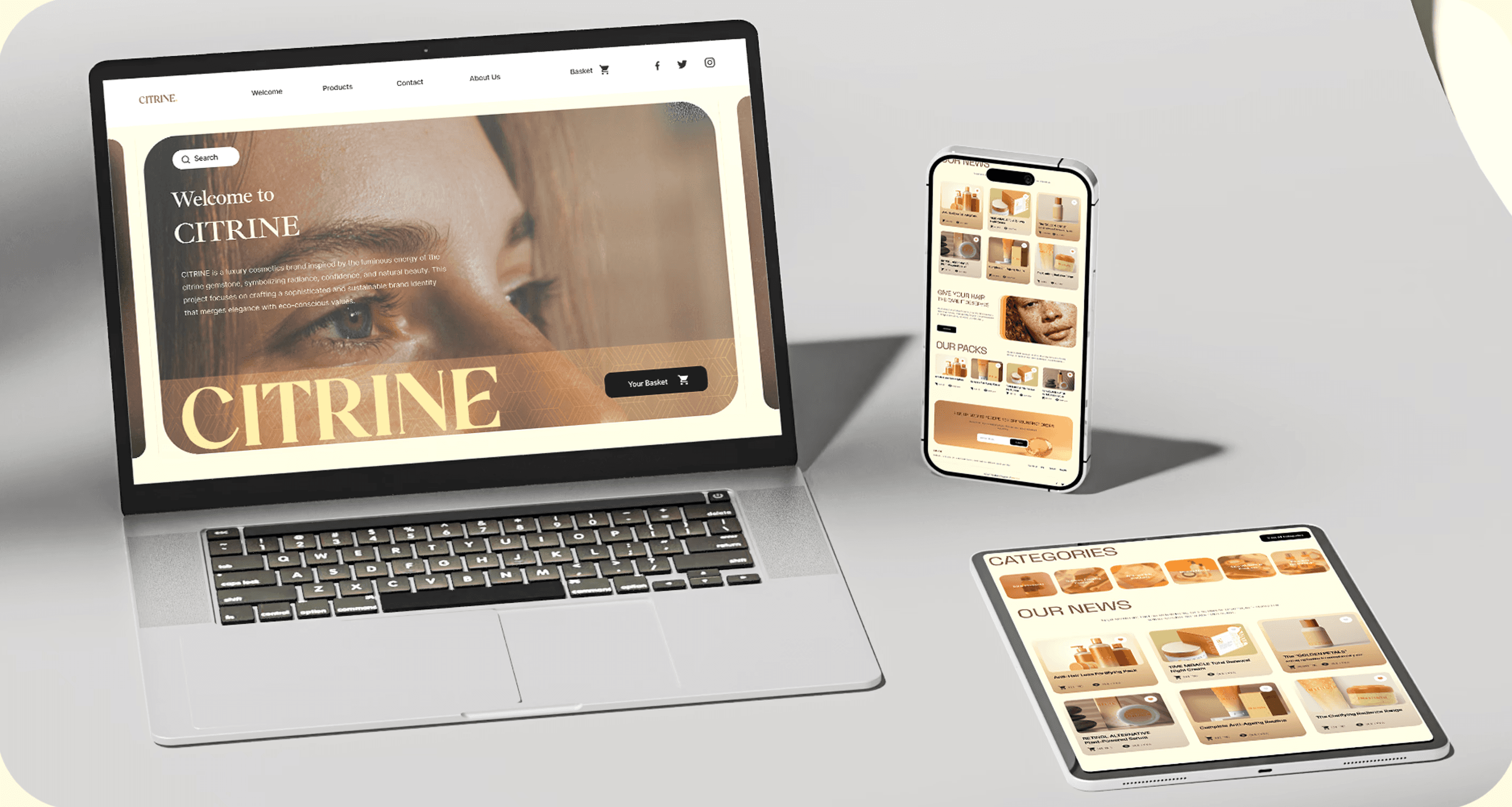 CITRINE is a luxury cosmetics brand inspired by the luminous energy of the citrine gemstone, symbolizing radiance, confidence, and natural beauty. This project focuses on crafting a sophisticated and sustainable brand identity that merges elegance with eco-conscious values.