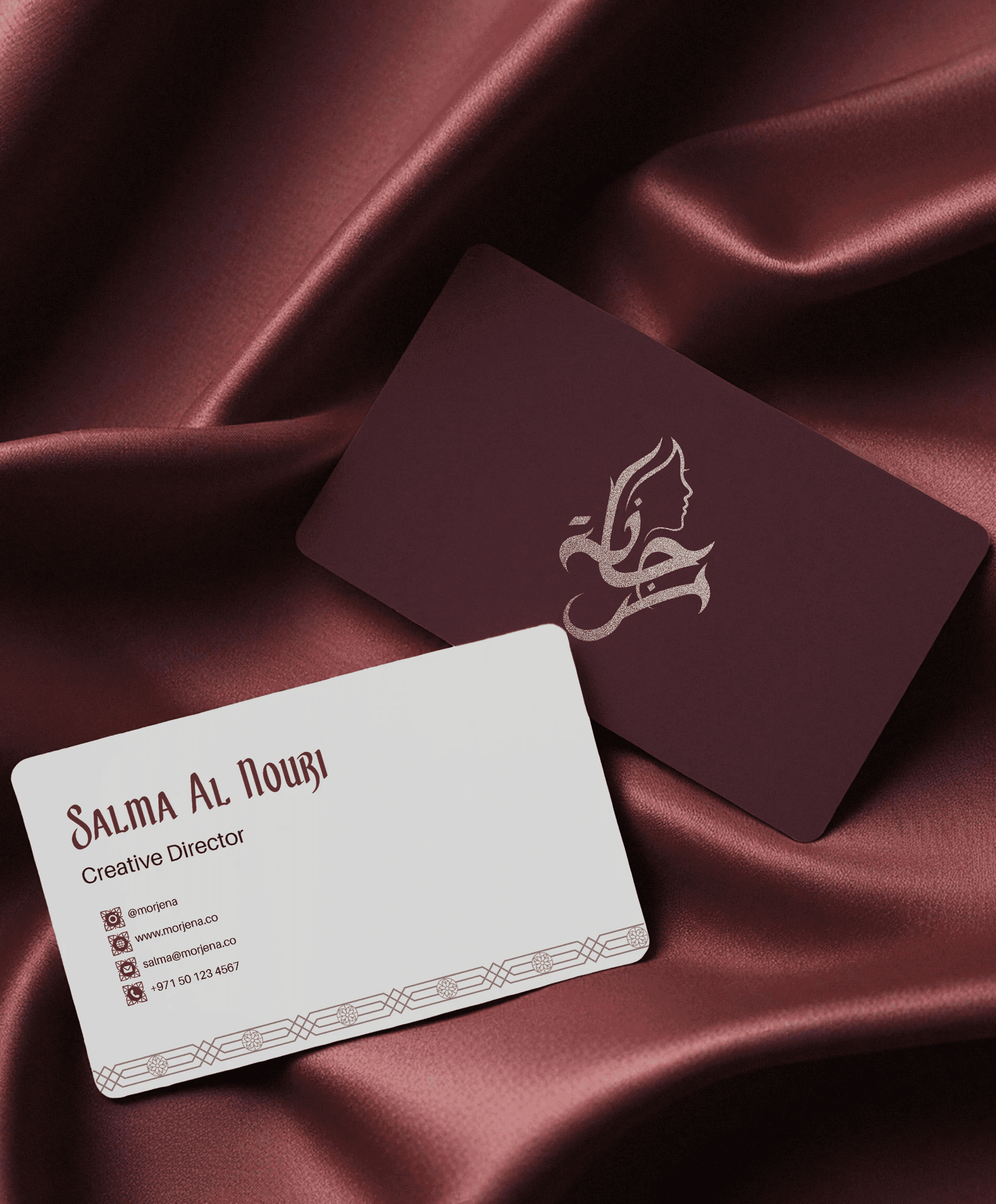 Morjena is a conceptual fashion brand rooted in Arabic heritage and designed for the contemporary Arab woman. This visual identity blends modern minimalism with cultural authenticity—celebrating modesty, femininity, and confidence. The bespoke logo fuses Arabic calligraphy with a woman’s silhouette, symbolizing elegance and strength. Warm tones of beige and burgundy express luxury and cultural depth, while clean typography adds a timeless touch.
