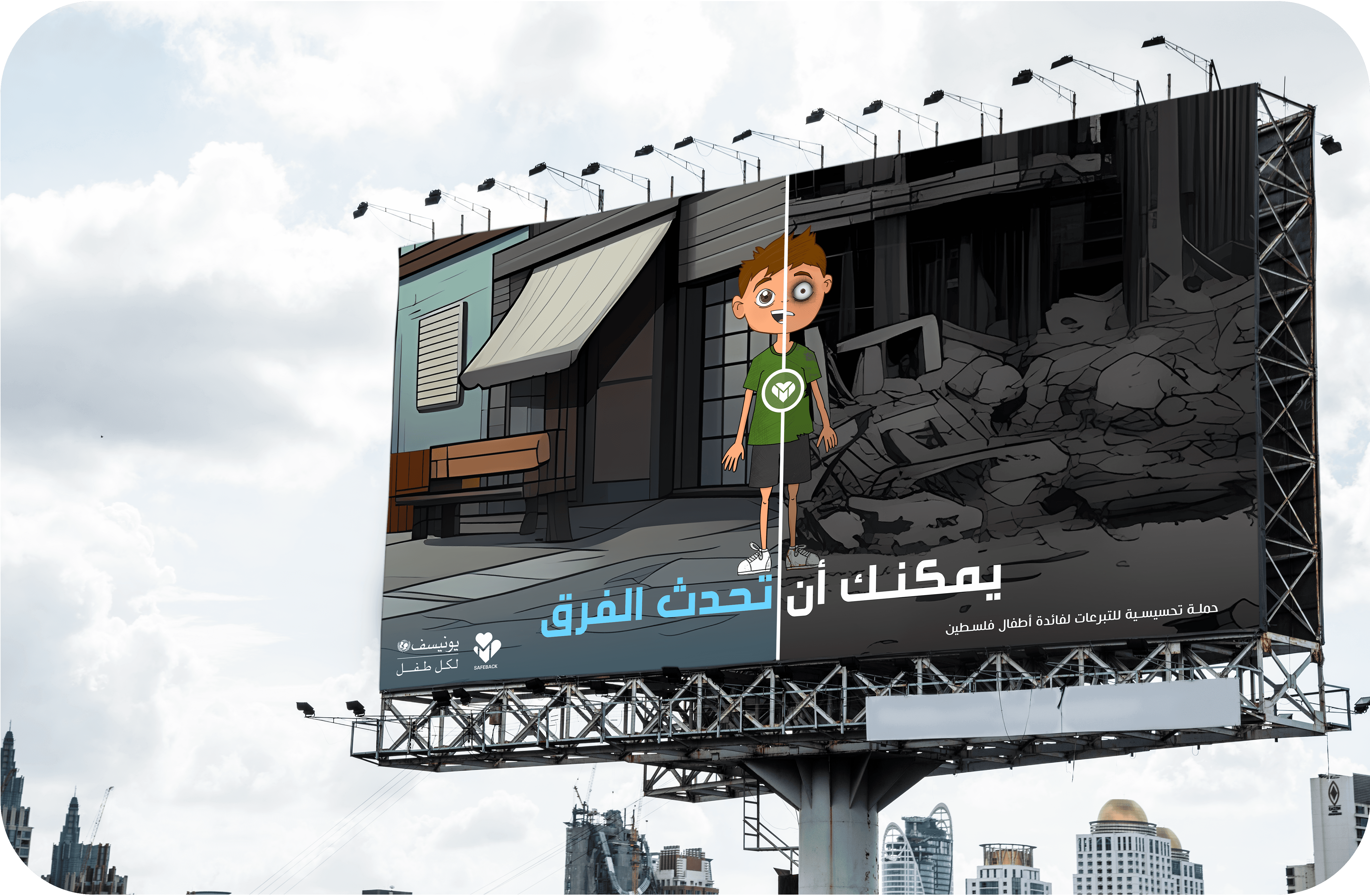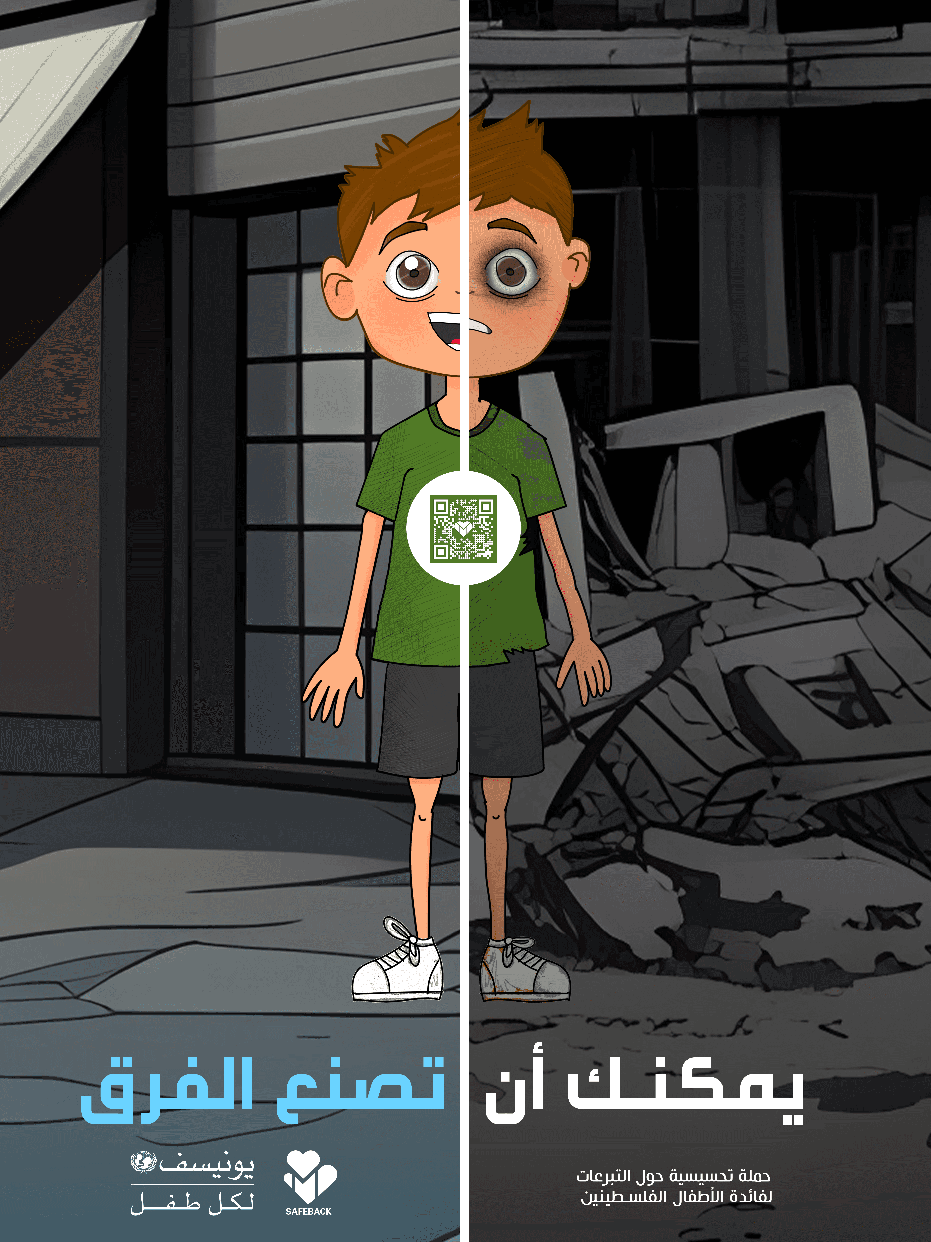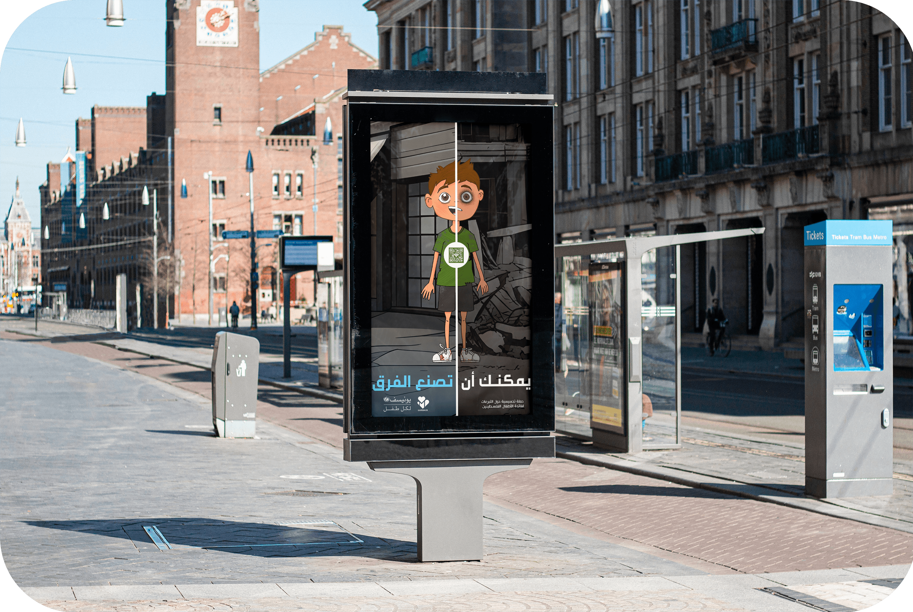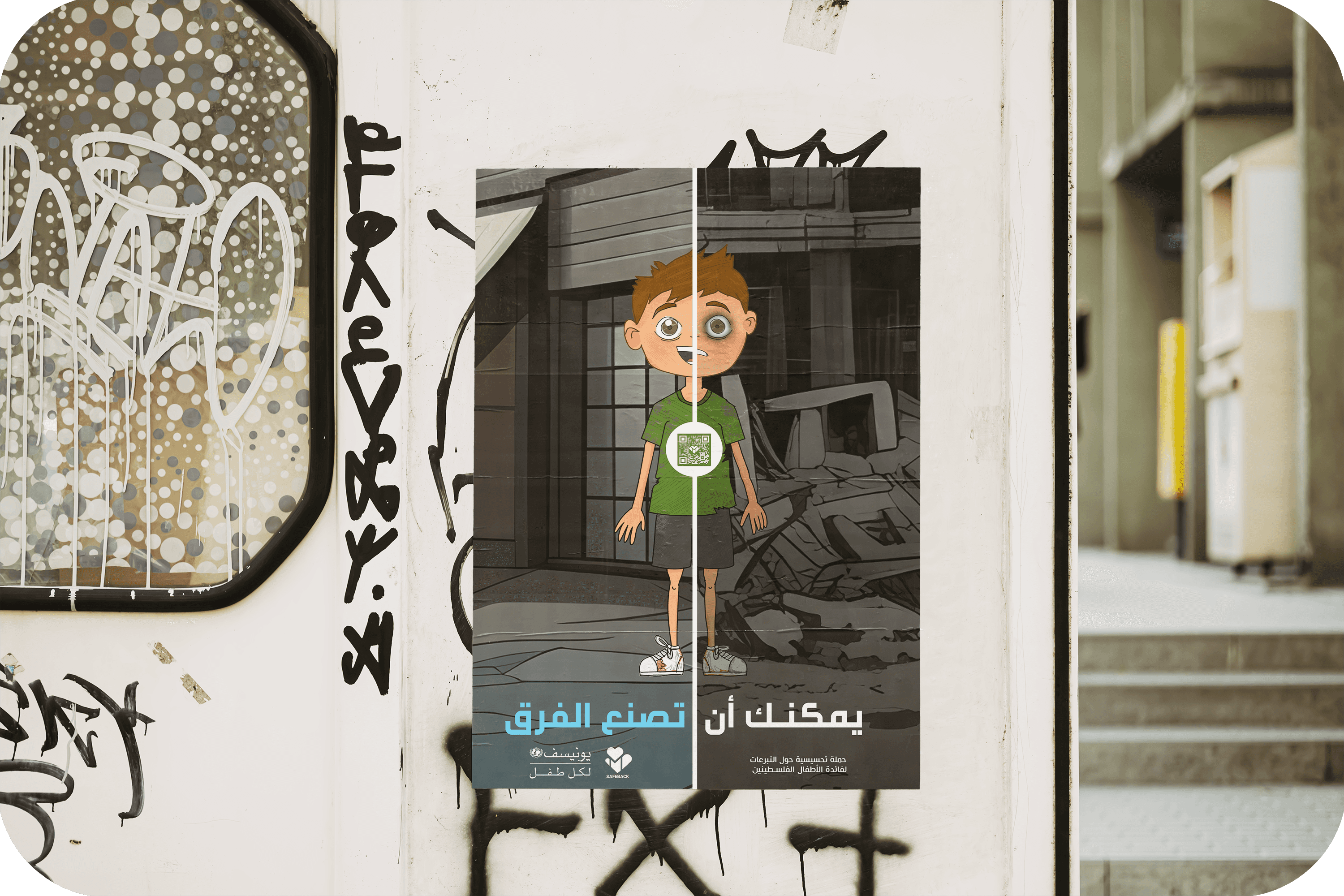 To bridge the digital and physical worlds, I designed an Out-of-Home (OOH) campaign focused on immediate visual impact. The poster series utilizes a 'Before & After' slider metaphor, inviting passersby to physically see their potential impact. The Arabic slogan 'You Can Make the Difference' is paired with a dynamic QR code, acting as an instant portal that transforms a moment of passive empathy on the street into active donation within the app.